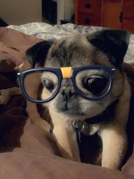This special girl was another that was not on our radar when we walked through the doors of Pug Nation in December 2018. For the first few days after being relinquished, she was required to be isolated before joining Gen Pop. With three days left at Pug Nation, she was cleared and the iso door opened. That was all it took for Christine to know Chloe was coming home. This poor sweet girl was so stove up and arthritic that her walk resembled something like a toy soldier marching. We took her to the vet to see if we could get her on the plane home with us in 72 hours but she needed shots and a dental. We would have to wait until February to bring our girl home, and that is exactly what we did. For almost a year and a half, she brought us so much love and laughter, a true class clown doing ridiculous things. Early April the pressure behind Chloe’s left eye started to climb and after an appointment with the eye specialist, we learned she could have an injection in her eye that would essentially “kill the eye” and relieve her pain and the chance of it bursting. We picked her up after a successful eye operation, but she never truly recovered from the surgery itself… and 48 hours later we said goodbye.