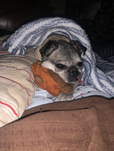Oh, how we loved you more than you will ever know, sweet Wee-Gee Man. From the minute we laid eyes on that sweet face and endearing tongue, we started to inquire about you. At the age of 12, you found yourself being relinquished, as your family was moving out of state. It took almost your entire time at Pug Nation to clear up your infected and neglected ears. We jumped in the truck and started our drive towards you and Morris. There are some people and animals that are just happy to be alive and so easy to love… and Luigi was that guy. He was so sweet, and easygoing, and had a love affair that had to be monitored closely with popcorn twists and blueberries. The best start to any day is waking up to discover that Wee-Geès tongue dried out and got stuck to your shoulder or neck during the night. We are so grateful that you shared your last five years with us and after watching you seriously decline in your last 2 months, both physically and mentally we knew it was time. We miss you more than you could ever imagine.