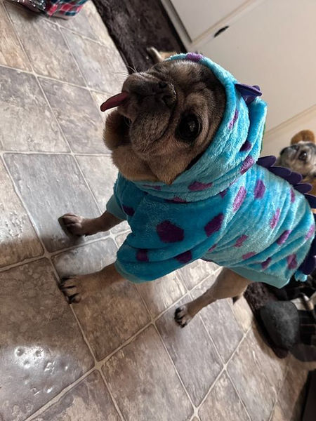This old man was picked up as a stray and spent over four months sitting at the shelter without a glance. We felt this crazy tongue pirate senior had sat there long enough, and we made plans to fly down and pick him up. One week before our flight was to takeoff we heard from the shelter to let us know that there was someone interested in adopting him. It was heartbreaking, but we knew we had to let him go. Two months later we were contacted because Choco’s adoption fell through and he was still there. Flights were booked immediately!! He continues to fit in perfectly and loves to race everyone everywhere trying “help”! He is the master of barging his way into whatever you’re doing!